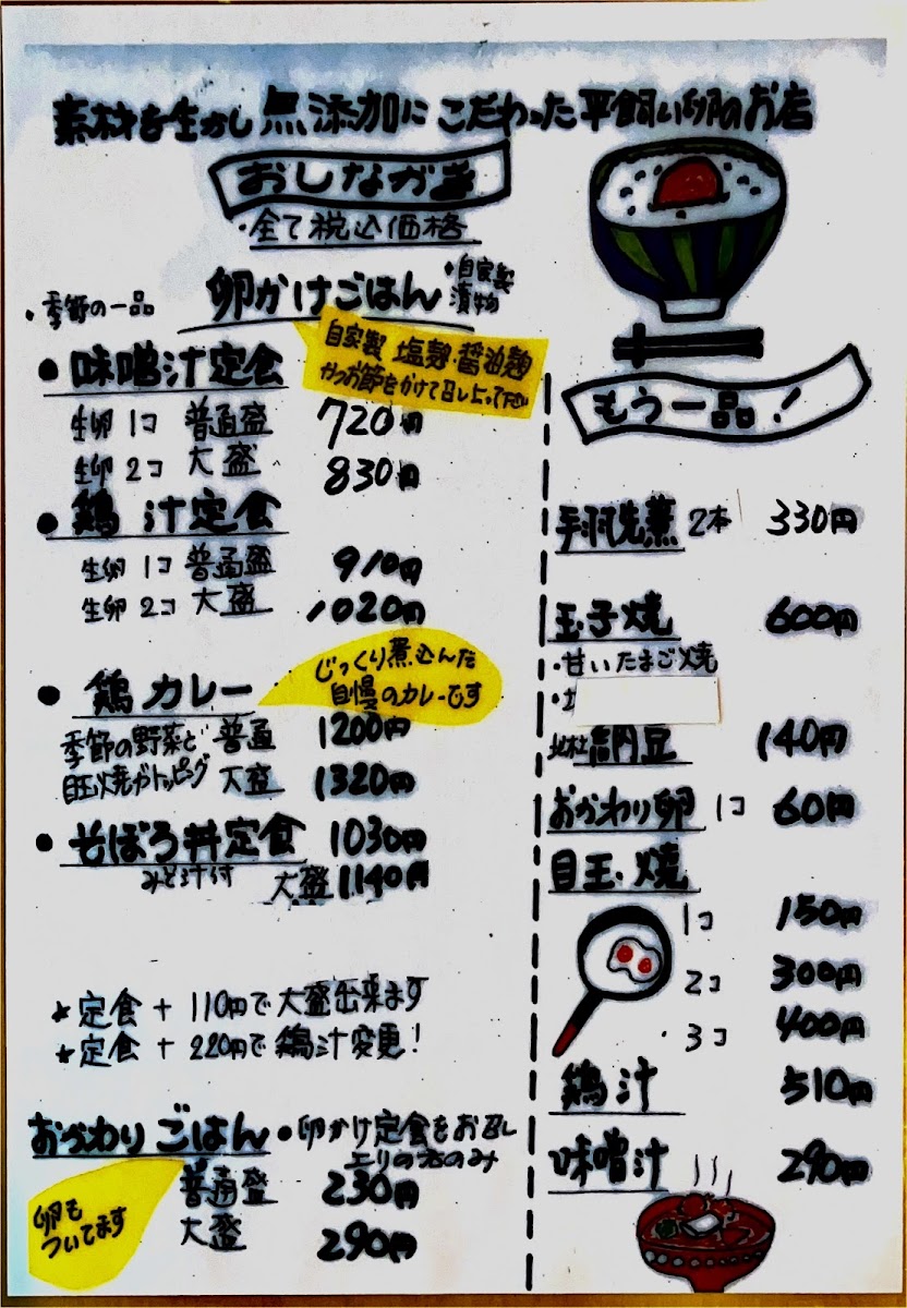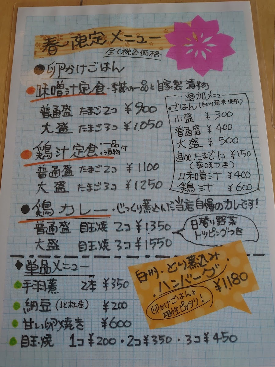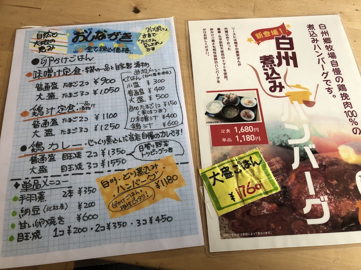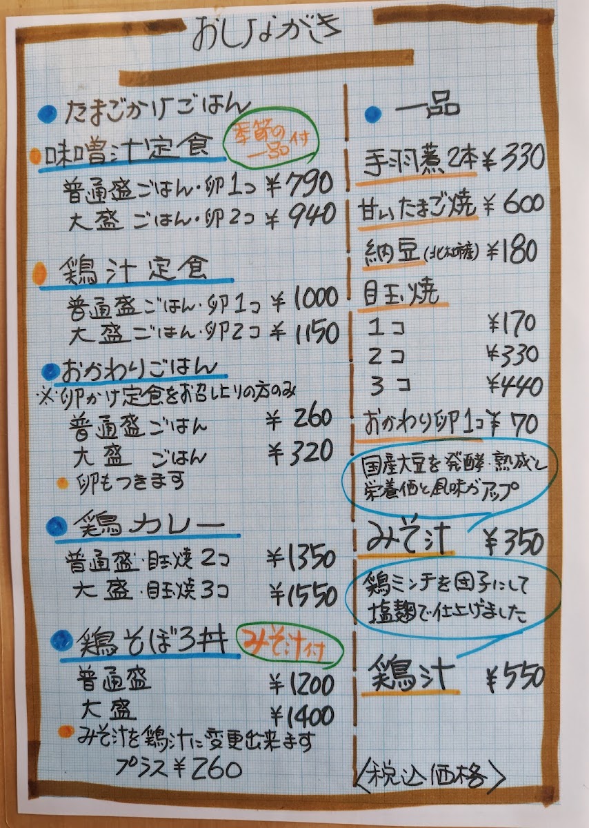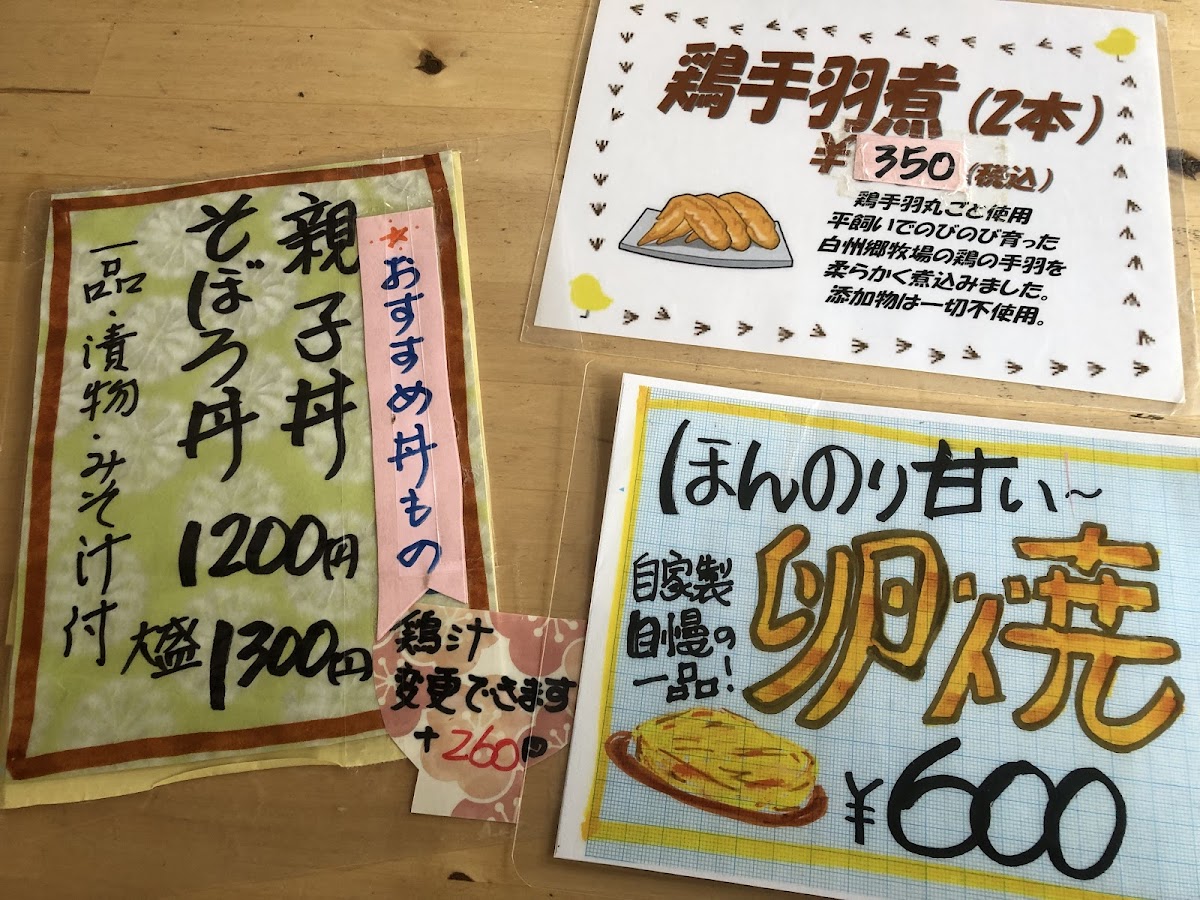 Opponi-Tei Kokko offers a menu that highlights the rich flavors of locally sourced ingredients, particularly focusing on eggs and chicken. A standout item is the 卵 かけ ご飯 味噌汁 定食, a comforting set meal that pairs fresh egg over rice with a savory miso soup, perfect for those seeking simplicity and satisfaction. Another signature dish is the 白州鶏カレー, a flavorful curry made with tender local chicken, ideal for curry lovers. For those craving something unique, the 卵の黄身 provides a delicate, rich egg yolk, while the 甘い卵焼き offers a sweet take on the classic Japanese omelet. The 手羽煮 is a deliciously tender braised chicken wing, full of umami. Additionally, the 鳥汁定食 serves a hearty, flavorful chicken broth, perfect for a wholesome meal. The たまごプリン is a must-try for dessert, with its smooth and creamy texture making it a crowd favorite. For those wanting to enhance their curry experience, the 白州鶏カレー おかわり卵乗せ allows a second helping of curry with the added richness of egg. The そぼろ丼定食 鶏汁変更 and 鳥のそぼろ丼 are both hearty rice bowls, with the latter featuring a savory chicken minced topping that pairs beautifully with the rich broth. With its focus on eggs and chicken, Opponi-Tei Kokko delivers a satisfying and comforting dining experience.